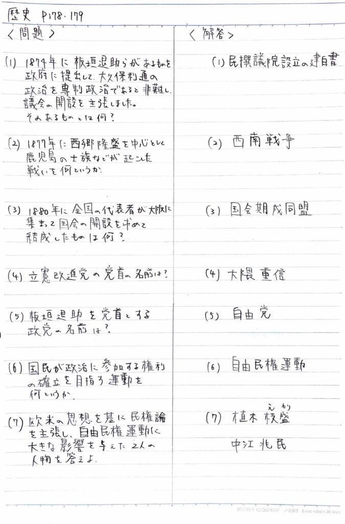影響として一番大きかったのは、作った問題は人物名や出来事名が答えになるものであったにもかかわらず、実際の定期テストでは、その人物や出来事について説明をする記述問題にも対応できたことです。