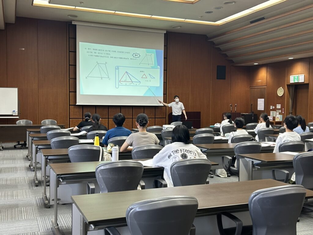 夏の特訓では、入試制度の説明から始まり、各科目1時間ずつ模擬テスト形式の問題に取り組みながら、勉強のやり方や今後の対策について講義を行いました。